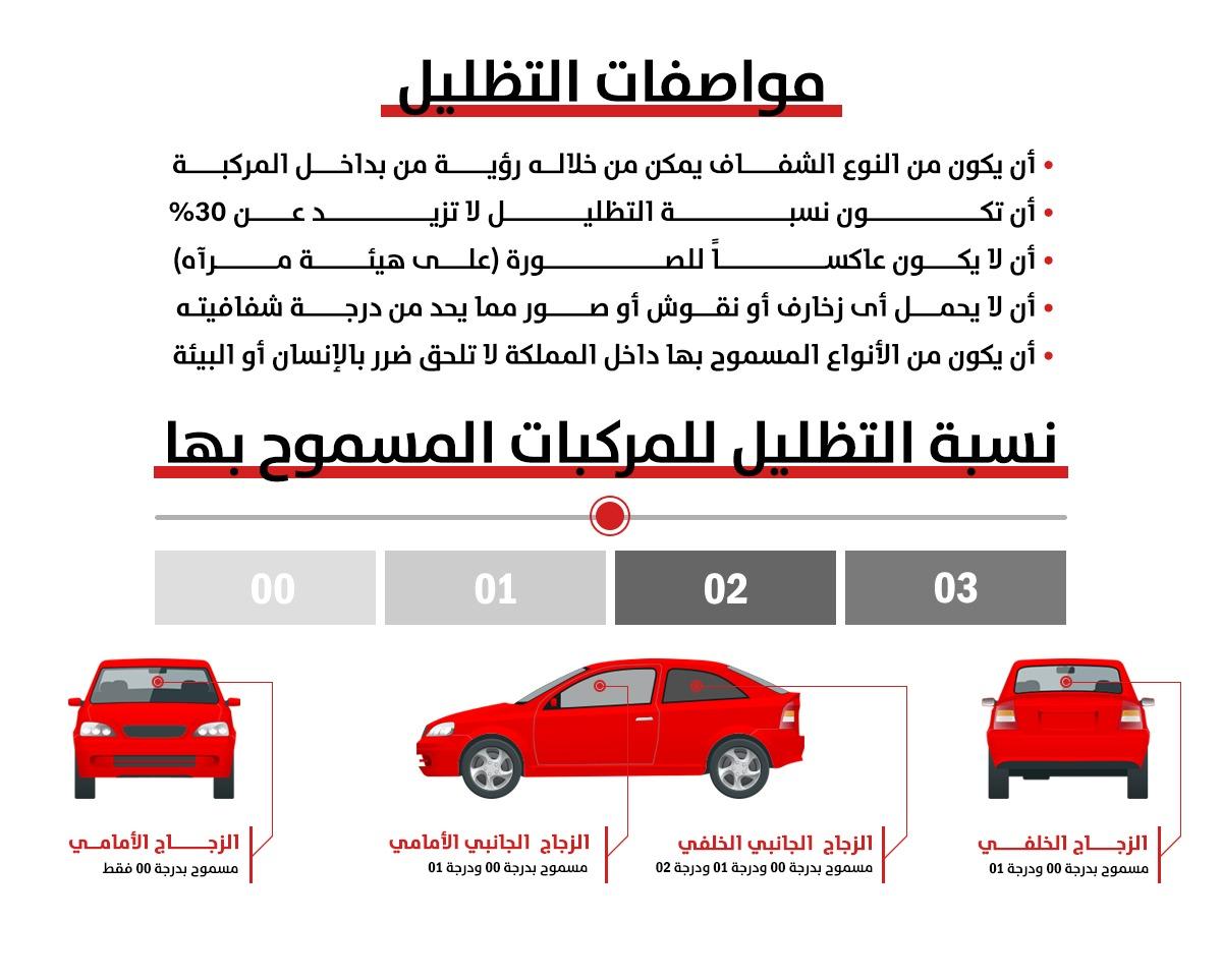 التزامهم بلوائح التظليل المصرح بها من هيئة المرور السعودي.